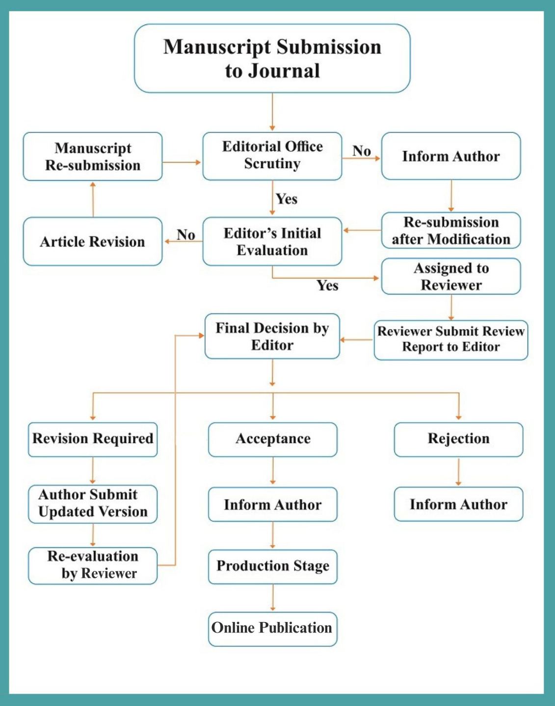 Whether a paper has been accepted or rejected is finally decided by the editor. If the article needs some changes, it may be advised to the author that they resubmit the piece. Even resubmitting the article can be rejected by the editor if it is shown to have been intentionally forged, manufactured, or exaggerated.PRODUCTION